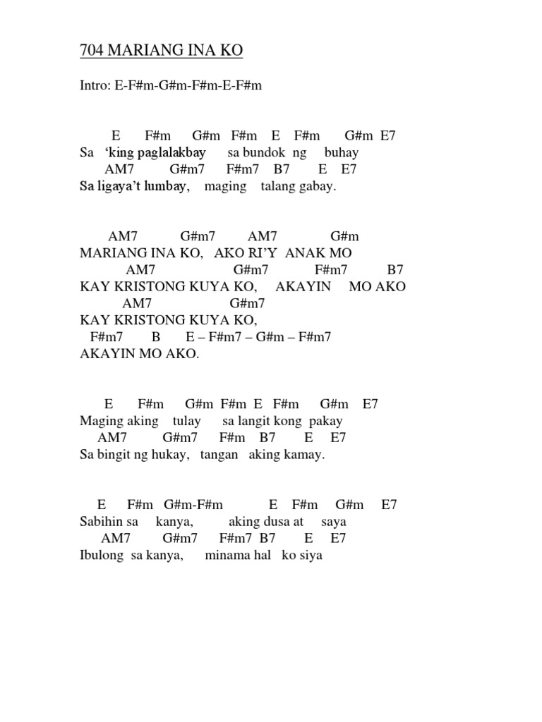 Mariang ina ko ako riy anak mo. Chords ratings diagrams and lyrics. Mariang ina ko ako riy anak mo Kay Kristong kuya ko akayin mo ako Kay Kristong kuya ko aka-yin mo ako.