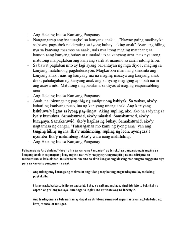 Hele Ng Ina Sa Kanyang Panganay Na Anak Pdf
