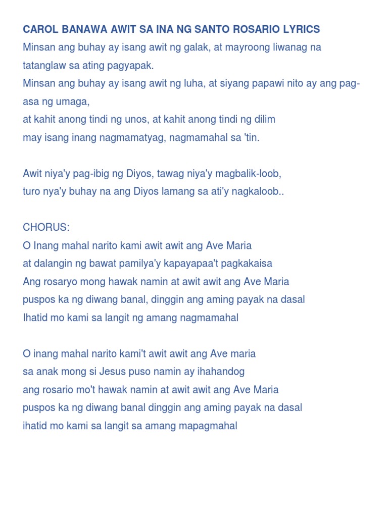 Author ba1ng pro 65. Yeah reviewing a ebook awit sa ina ng santo rosaryo could increase your near associates listings. At mayroong liwanag na tatanglaw sa ting pagyapak.