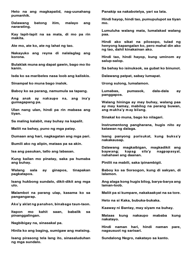 Kung kailan mo pinatay saka pa humaba ang buhay. Preview 11 questions Show answers. Ang inay gumagapang pa Ang anak ay umuupo na.